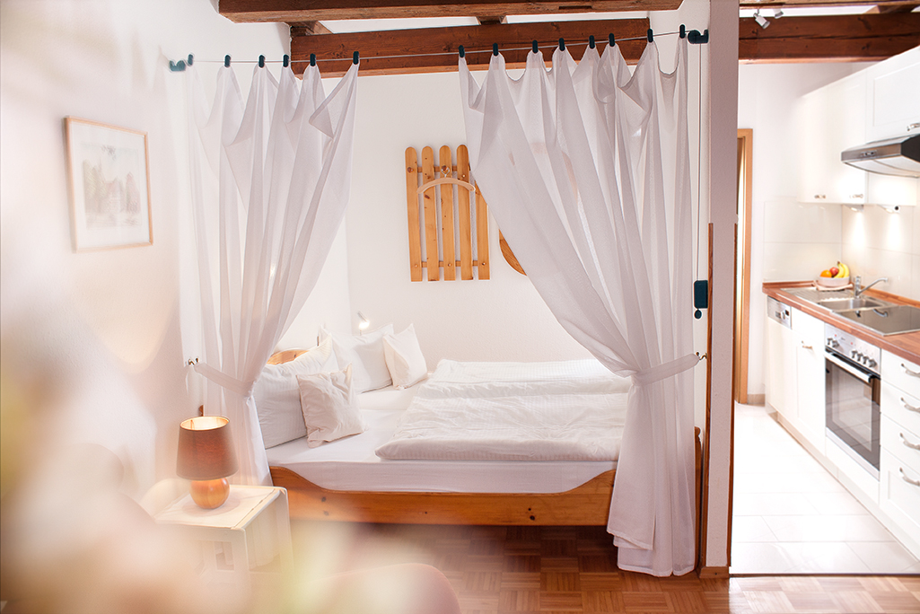 Ihr wohnt zu zweit oder wahlweise auch allein in Einzelzimmern in liebevoll ausgestatteten Ferienwohnungen, deren Räume nach energetischen Feng Shui ausgerichtet sind.